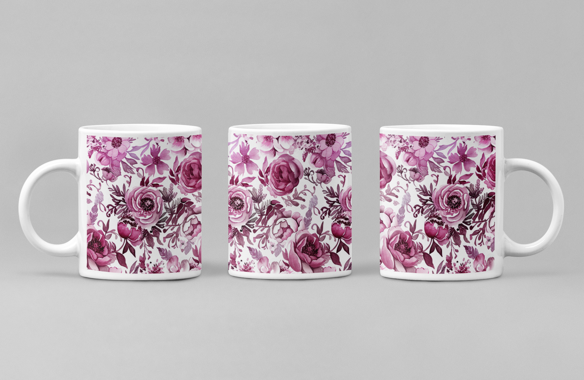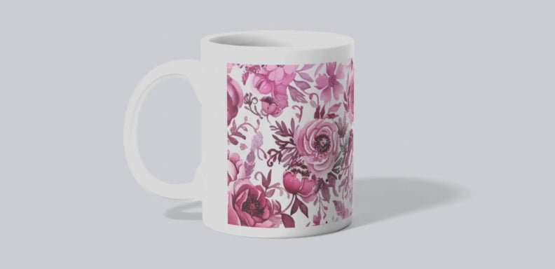 Actual mug image goes from the top of the mug to the very bottom. Dishwasher and microwave safe, except for the wooden handle mug which is hand wash only.
