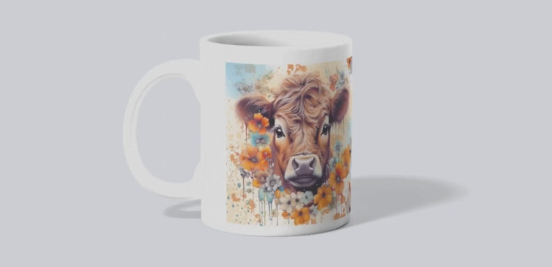 Actual mug image goes from the top of the mug to the very bottom. Microwave and dishwasher safe, except for the wooden handle mug that is handwash only.