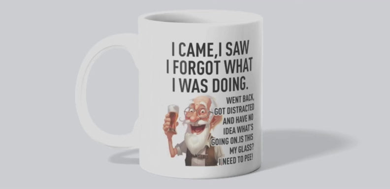 This ain’t just a mug, it’s the kind of glass you find on a wise guy’s desk—half full of coffee, half full of confusion, and all attitude. With its rambling confession printed across the front, it’s less a drinkware piece and more a testimony to the daily chaos of a made man who can’t remember if he’s supposed to be plotting a hit or finding the restroom.